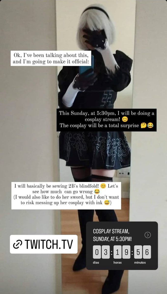 Now it's official: I'm going to do a cosplay stream where I'm going to dress up as 2B, while I (try to) sew 2B's blindfold! ^.^ Sunday, at 5:30 pm, at twitch.tv/biakamyuzu! ;) #twitch #twitchstreamer #cosplay #cosplaystream #nierautomata #2bcosplay #sewing #cosplayer