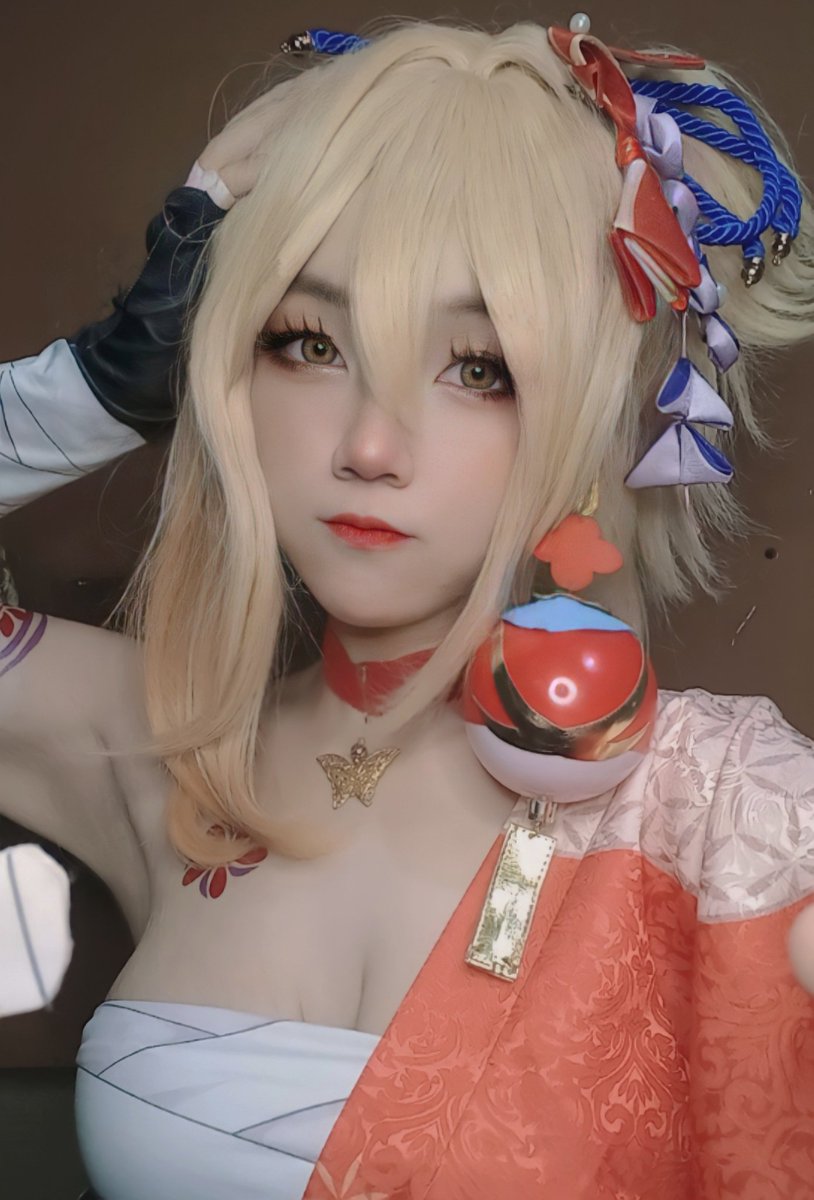 "Welcome to Naganohara! My name is Yoimiya — just let me know if you need anything!" . Char : Yoimiya Series : Genshin Impact CN : @JhennyCos . #GenshinImpact #cosplay #cosplayerindonesia #Yoimiya #anime #miHoYo #原神 #原神cos