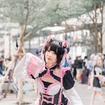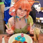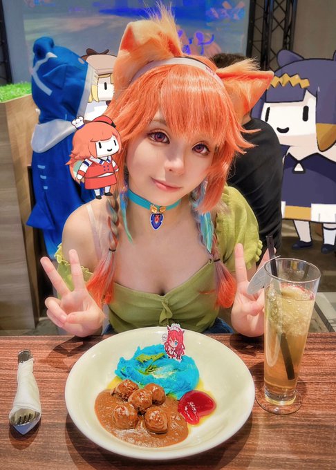 @takanashikiara Chilling with Mori at dinner❗️💗 Mori(my cosplay buddy) took this picture for me~🤧 #hololiveEN #cosplays @anipluscafesg