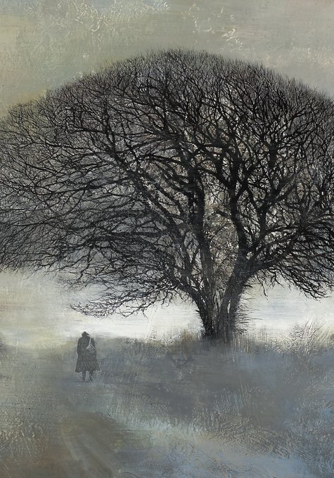 Lob steps out (detail) ink, egg tempera, gesso Lob wanders through so many of my paintings as the spirit of the fields, woods, meadows and hedgerows of the countryside. Sometimes I hide him amongst the detail but he's usually there somewhere. #countryside #landscape #painting