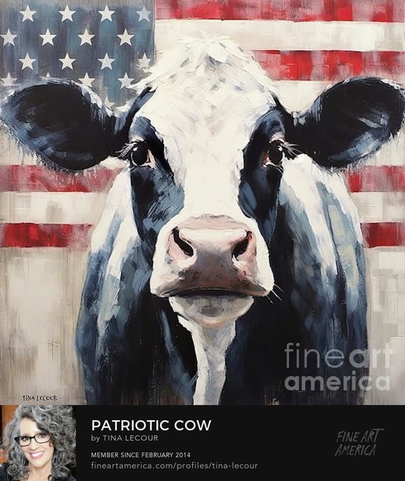 Patriotic Cow..Can Be Purchased Here..fineartamerica.com/featured/patri… #cow #animals #farmers #farm #farmer #wallart #homedecor #kitchen #interiordecor #interiordesigner #interiordesign #buyintoart #ayearforart #gifts #giftideas #restaurants #cowgirlstyle #cow