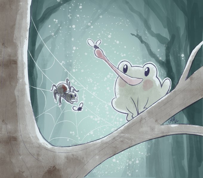 Day 9 of #froggyfall : Spooky forest! #ArtistOnTwitter #art #digitalart #cute #cozy #cozytoberfest #frog #procreateart