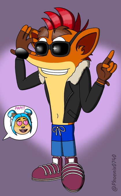 My OC Nozomi Bandicoot. Daughter of Crash and Megumi. 🧡💙 I wanted to make a better version from my 1st fanart some time ago. Here, she's on her casual clothes. I'll post another one forward in her job outfit. 🤠💎 #CrashBandicootFanart #OC #CrashGumi