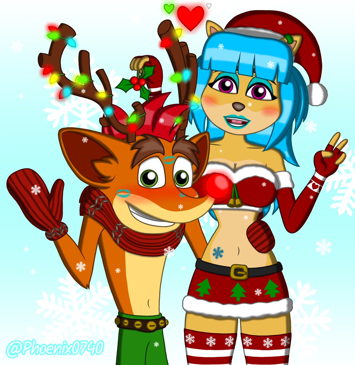 I hope you enjoy your festivity a lot, since Crash and Megumi will do the same. 🧡💋💙 🎄❄ MERRY CHRISTMAS, EVERYONE!! ❄🎄 #CrashBandicootFanart #CrashBandicoot #MegumiBandicoot #CrashGumi #MerryChristmas2022