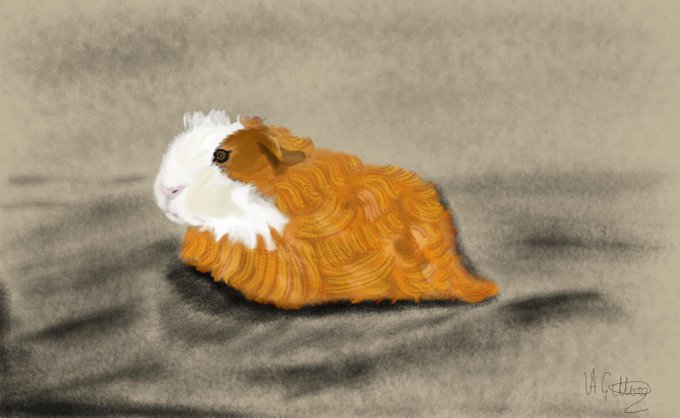 #AnimalAlphabets T is for Texel Guinea Pig @AnimalAlphabets #CreatedOnSurface #drawing #painting #illustration #digitalart #guineapig