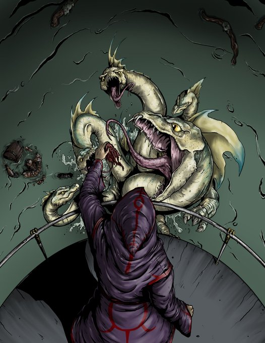 I've been waiting a long time to show this piece off. Here's the cover illustration I did for The Vergil Bestiary, a #dnd 5e supplement book filled with monsters and bosses! bit.ly/3DXS7nT Drawn on a @surface using @sketchbookapp #ttrpg #dndart #CreatedOnSurface