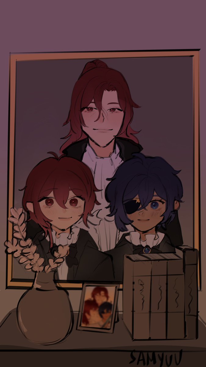 Crepus, Diluc, and Kaeya! Guess who wrote "traitor" on kaeya's face 🥰 #Illustrator #illustrations #GenshinImpact #genshinimpactfanart #Kaeya #Diluc #Crepus