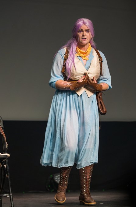 One full-body shot of my Imogen cosplay exists! Mid performance💙 I'm looking so forward to upgrading/finishing her🥰 📸 by Tonykohnphoto (IG) #Critcalrole #criticalrolecosplay #imogentemult #imogentemultcosplay