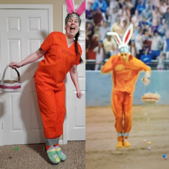 Happy Easter from the bunny from Idiocracy! #diy #crafty #cosplay #handmade #idiocracy #bunny #movie #rickandmorty #crocs #mondaynighteehabilitation #ducttape