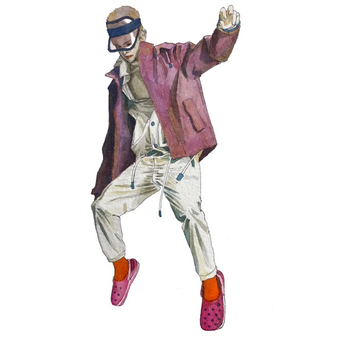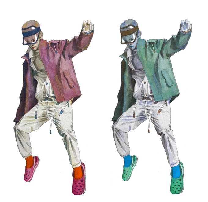 全身ひさびさ! 色相変えても良い感じになった🙆♀️ #illustration #水彩画 #水彩イラスト #ファッションイラスト #fashionillust #crocs #crocsfashion #お絵描き好きさんと繋がりたい #イラスト好きさんと繋がりたい #アナログイラスト #イラスト