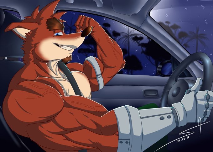 Crunch: -it is just a little flexing, you will be safe dont worry. I always drive heavy and fast vehicles, the hardest to handle... that makes me a total expert, you can ask to my siblings. #crashbandicoot #CrashBandicootFanArt #crunchbandicoot #fanart #drawing