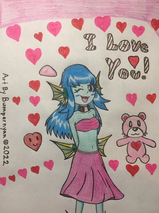 Love Day Number 8. Another valentines card for you. 💝 Coraline: “I Love You!” 💖💖💖 : #BumperMonster #illustration #illustrator #OC #cuteart #ArtistOnTwitter #Cryptid #Cryptidart #Mermaid #ValentinesDay #AnimeOC #animegirl #バンパーブロック #イラスト