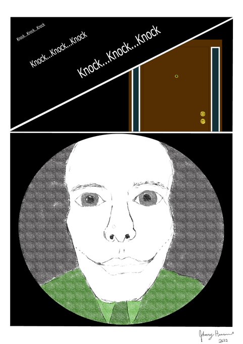 Day 5: Indrid Cold Drawing in Clip Studio I had a little harder time with this one but I'm happy with the little comic setup. Weird strangers knocking on your door at odd hours scares the beezjesus out of me. #CryptidinJuly #CryptidinJuly2022 #drawing #digitalart #indridcold