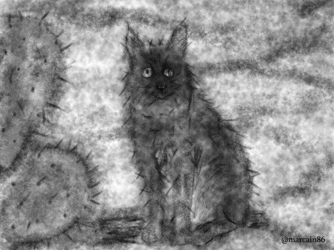 Day 2: Cactus Cat Digital drawing in Clip Studio #CryptidinJuly #CryptidinJuly2022 #drawing #digitalart #cactuscat