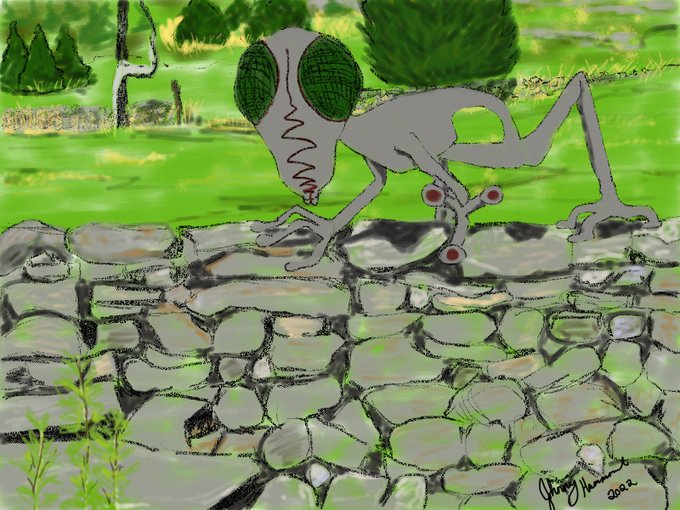 Day 8: Van Meter Visitor Drawing on Wacom in Clip Studio I really got into working on this one. I'd never heard of this one so I read the description and let my imagination go wild. #CryptidinJuly #CryptidinJuly2022 #drawing #digitalart #vanmetervisitor