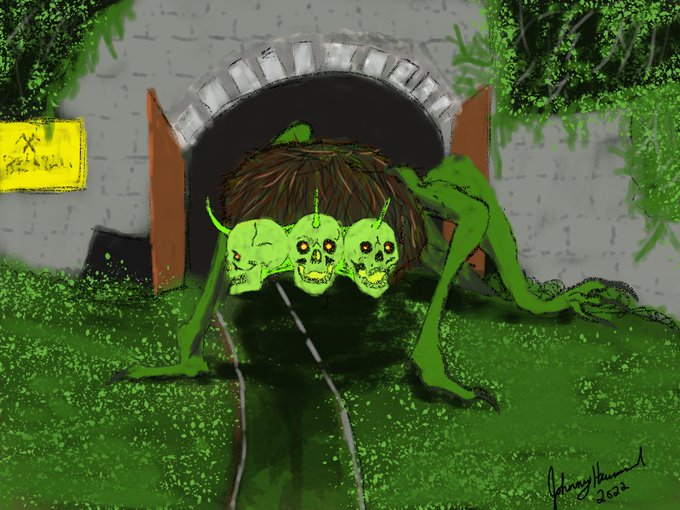 The Van Meter Visitor, a mystery which brought a country town into the global spotlight. Now, forever sealed in the depths below... #CryptidinJuly #CryptidinJuly2022 #digitalpainting #DigitalArtist