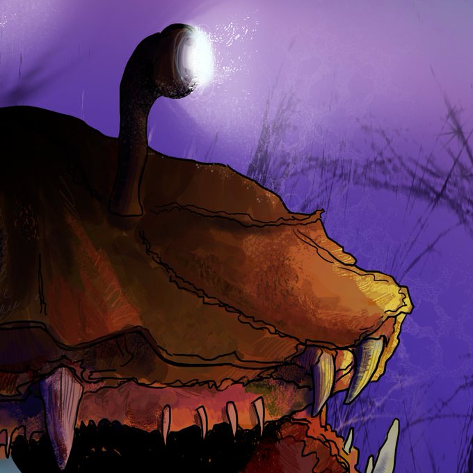 well, starting another week with poor bat-like-creature-with-lasors-from-a-horn, who was pursued to a coal mine :'D actually, I've never complete so much days in a challenge, congrats to me 🥂 #CryptidinJuly2022 #cryptids #digitalart #creepypasta