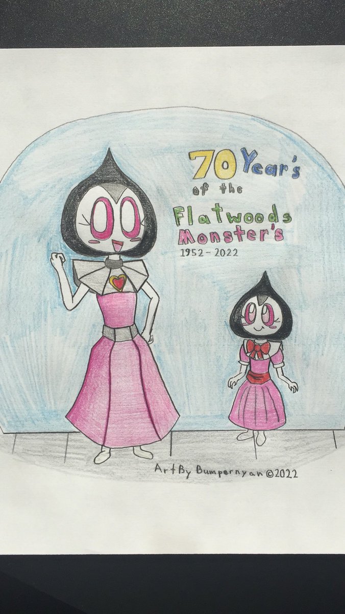 It’s been 70 Years of the Flatwoods Monster. I’m having a celebrating for Ellie the Flatwoods Monster and her little sister Braxxie. Happy 70 Years. @MonsterMuseum #BumperMonsters #illustraion #illustrator #cuteart #OC #MonsterOC #Cryptids #バンパーブロック #イラスト