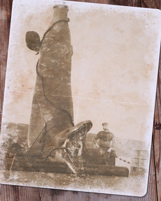 Big Catch - A "sea serpent" caught off the coast of Maine circa 1920. Some vintage cryptid/paleoart art I made a few months back. #paleoart #cryptozoology #cryptids #mosasaurs #seamonsters #blender #alternatehistory