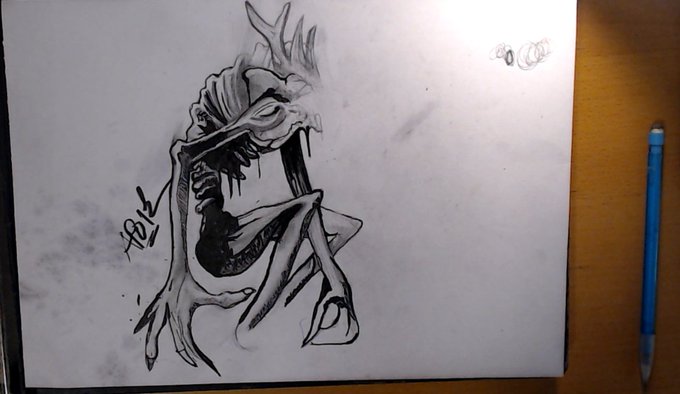 gonna put a head on this here Wendigo and call it a night. maaaaybe spart a new prompt. #inktober2022 #darkart #cryptids twitch.tv/jmacpegasus