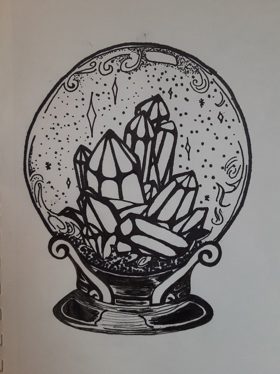 Inktober2021 Day 1: Crystal #inktober2021 #inktober2021crystal #crystalball #crystals #myartwork
