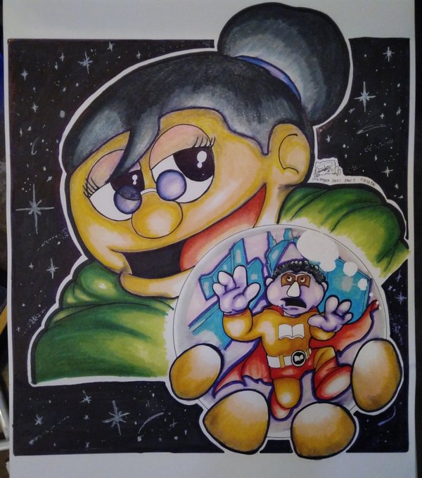@inktober Day 1 - Crystal... Manang Bola from Batibot and Labyrinth movie poster mash up... #inktober #inktober2021 #day1 #crystal #crystalball #batibot #manangbola #kapitanbasa #labyrinthmovie #davidbowie #perlasnabilogwagtutulogtulogsabihinkaagadsakinangsagot #babebibobu