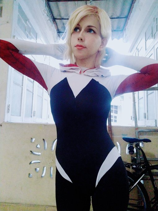 Aquí estoy usando un Cosplay de FaviusCosplay , de los cosmaker que más admiro de Cuba . Busquen su Instagram @favier34 no se va a desepcionar #spidergwen #spidergosth #gwen #gwencosplay #cosplay #cubacosplay #tweetercuba