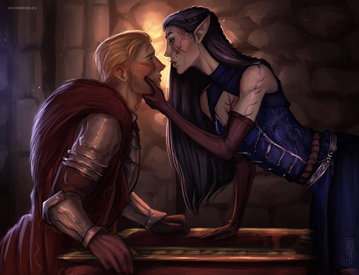 A little bit of CullenxLavellan 😊 Because sometimes Inky deserves a fairy tale and not being dumped in the middle of nowhere #solamancerproblems 🙃 #DragonAge #dragonagefanart #bioware #DragonAgeInquisition #cullavellan