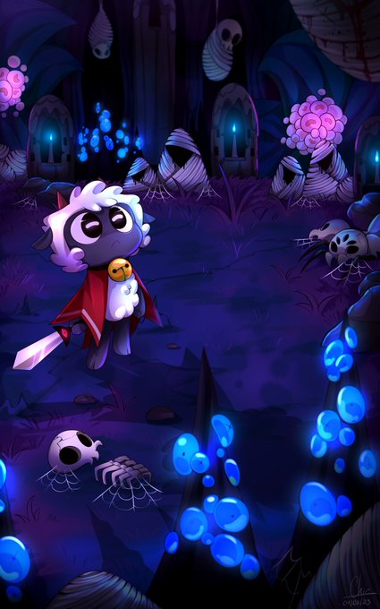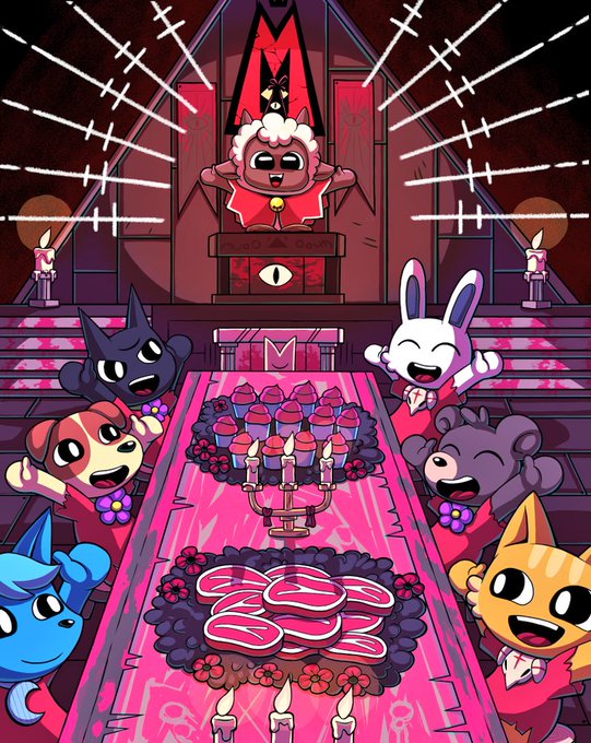 It's the fanart for 1st anniversary, but I spent too much time to finish it......😥 #CultoftheLamb #cultofthelambfanart