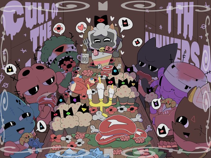 Congratulations on the 1st anniversary of Cult of the Lamb!🐏🐈⬛💚❤️💙💜 カルトオブザラム1周年おめでとうございます! (日本時間で11日になったので投下🐏🐈⬛) #CultoftheLamb #cultofthelambfanart