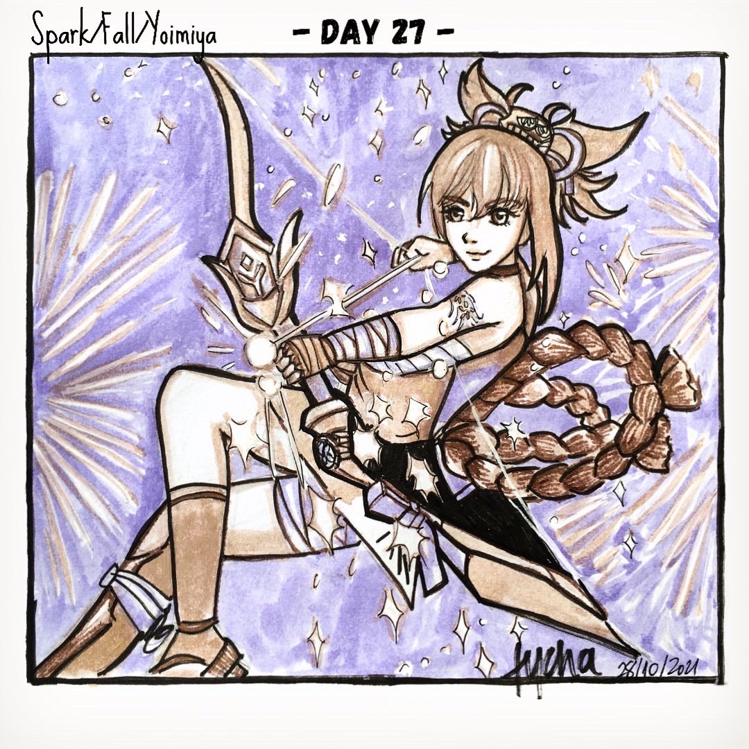 [Day 27] Spark/Fall/Yoimiya🎇 “𝙷𝚎𝚛𝚎 𝚌𝚘𝚖𝚎 𝚝𝚑𝚎 𝚏𝚒𝚛𝚎𝚠𝚘𝚛𝚔𝚜!” . #Yoimiya #genshintober2021 #cutegirltober2021 #inktober2021
