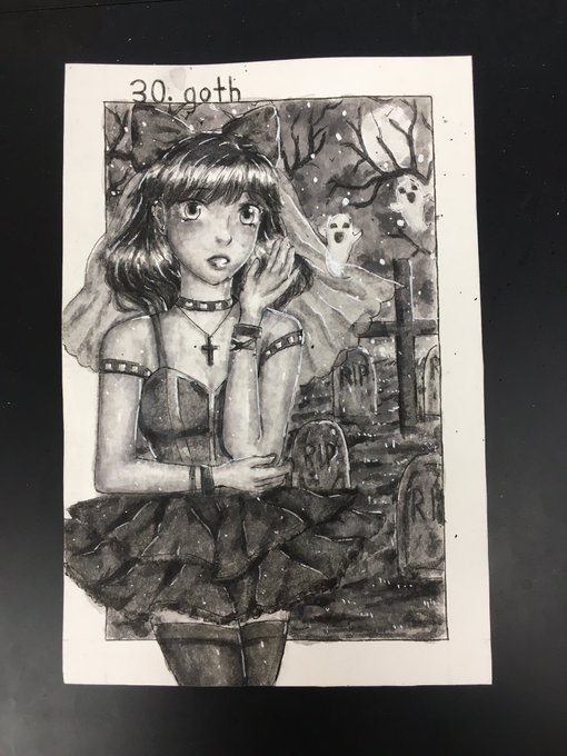 Day 30 for inktober/cutegirltober is Goth! I really adore how this one came out, the colors just mesh so well together. I've been putting up sketches of my drawings on my patreon as well! Link is in my bio🎃 #inktober #inktober2021 #cutegirltober #cutegirltober2021