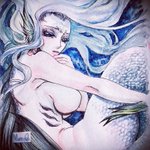 先月のお題ですが DAY16:mermaid 加工で色の飛んだ部分ほか、今までで1番いい感じに水彩で塗れたお気に入り #cutegirltober #cutegirltober2021 #inktober2021