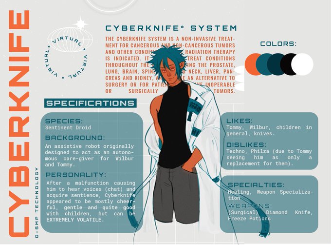 Character Sheet for Cyberknife! Might consider doing Nightmare's next, throw your headcanons about them at me ✊ #CYBERKNIFEFANART #TECHNOFANART #CYBERKNIFE #TECHNOBLADE #DSMP