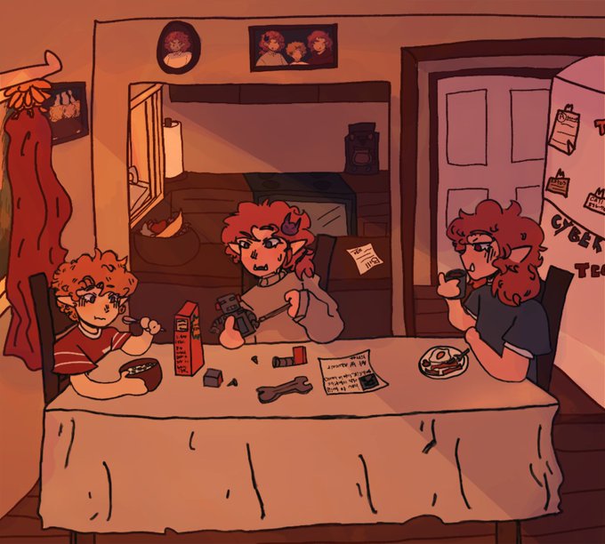 Is that.. The cyber brothers? Real? Breakfast at 3pm in the afternoon. #tommyinnit #technoblade #BEDROCKBROS #bedrockbros #tommyinnitfanart #technobladefanart #cyberknifefanart (??) #dsmp
