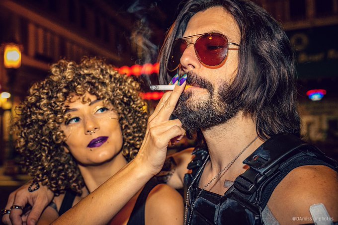 Happy Birthday Mr. Silverhand. Got ya a smoke for your bday! Hope you enjoy it! ❤️❤️🤭 Love Mrs Silverhand! @CyberpunkGame #JohnnySilverhand #Cyberpunk2077 #Cyberpunk2077cosplay #silverv