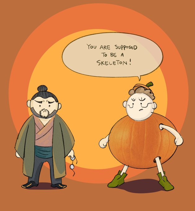 "... and where did you get Saburo's clothes anyway?!" #Cyberpunk2077 #cyberpunk2077fanart #GoroTakemura #illustration #sketch #Halloween #Pumpkin #costumeparty