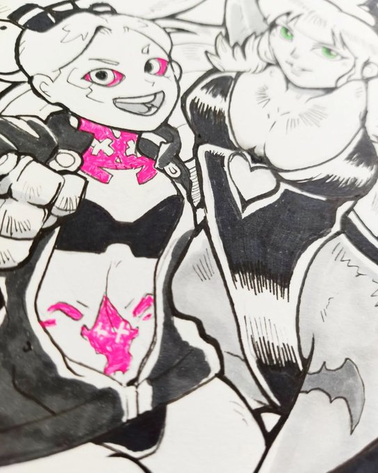 Inktober 18 Morrigan from DarkStalker & Rebecca from Cyberpunk2077 #inktober2022 #inktober #Cyberpunk2077 #Cyberpunkrebecca #morrigan #Darkstalkers #fanart #commissionsopen
