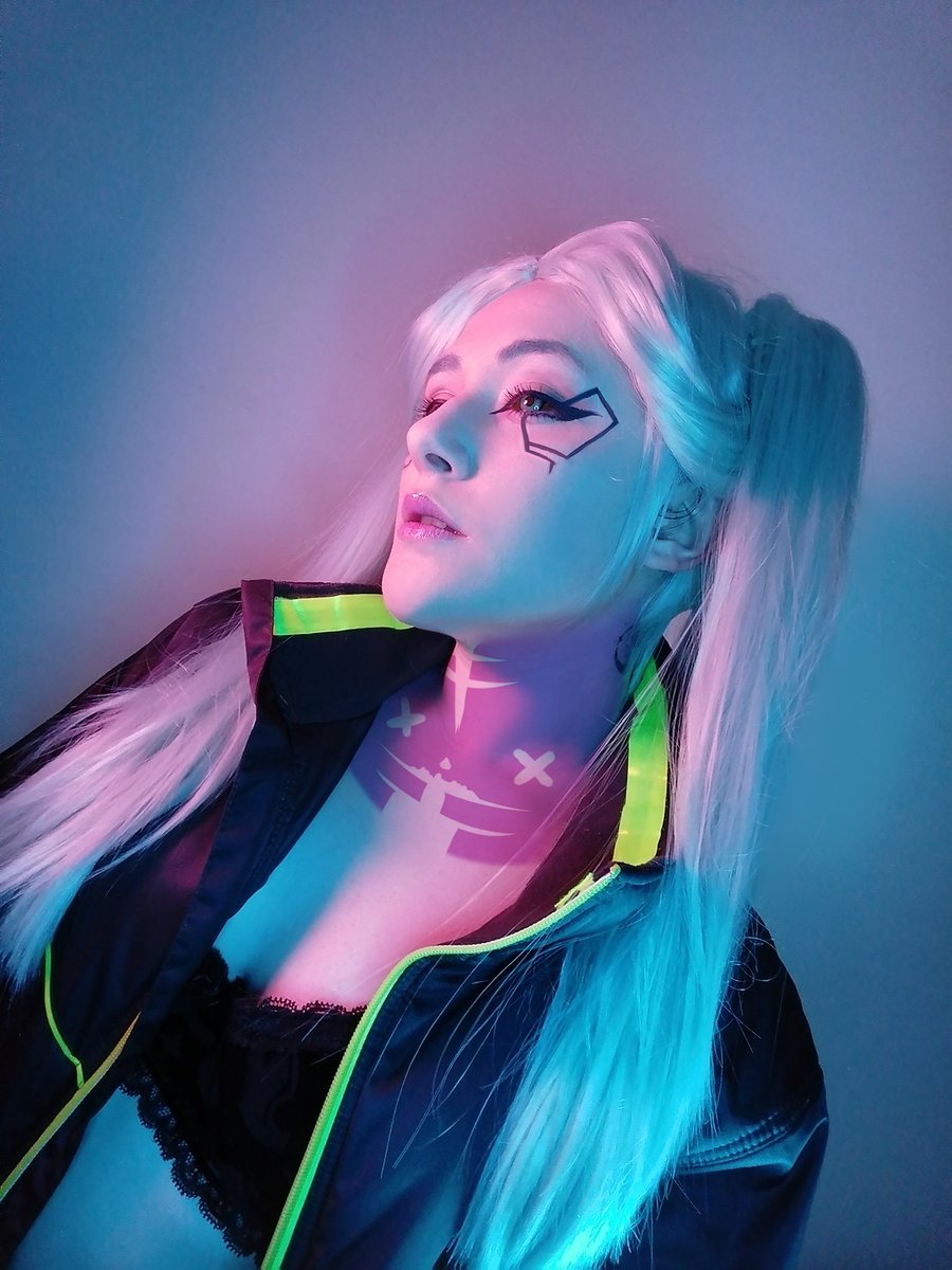 closet Cyberpunk: Edgerunners Rebecca cosplay trial Im still waiting for my costume and guns to arrive. Im so excited!!! Tattoos and contacts on my official cosplay #cosplay #CyberpunkEdgerunners #Cyberpunkrebecca #Rebecca #cyberpunk #cosplayergirl