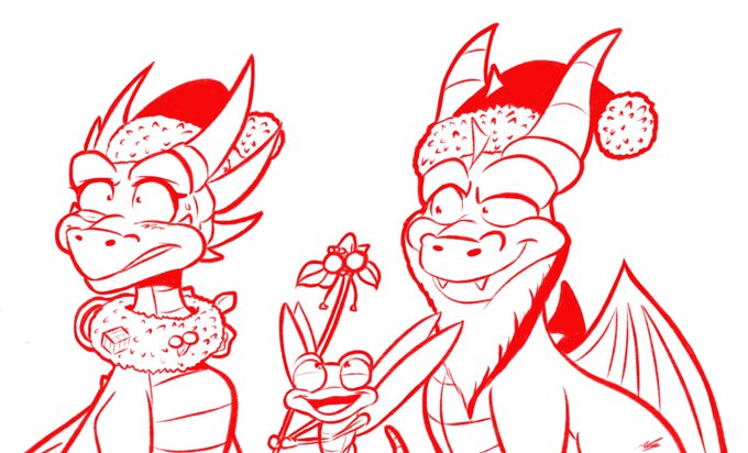 Festive Spyro Sketch. [WIP] #SpyroTheDragon #CynderTheDragoness #Christmas #Artwork #WIP #Drawing #FanArt #Procreate