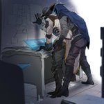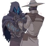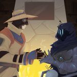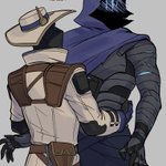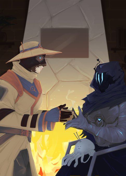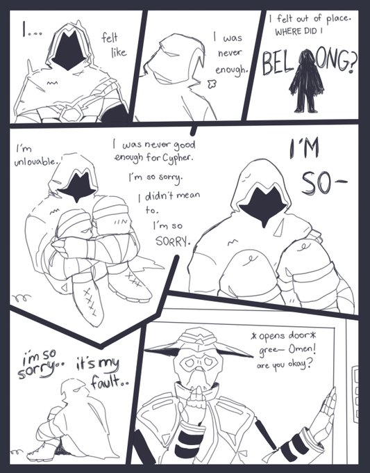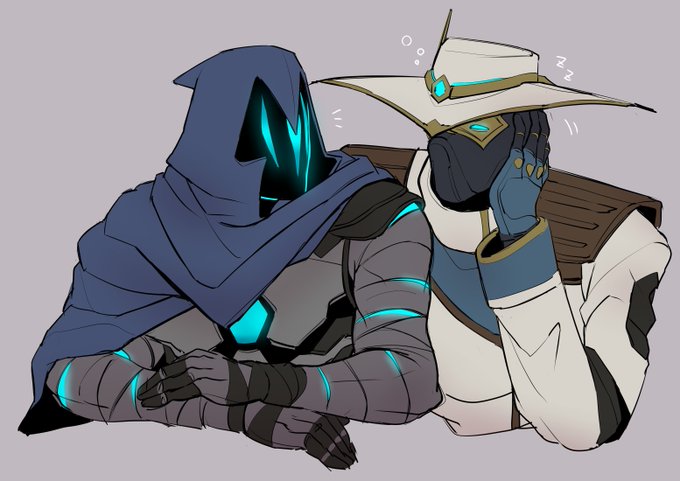 My piece for the @cyphmenzine! Wanted to make something sweet based on that card where omen is knitting <3 #valorantfanart #cyphmen #shadowire #omen #cypher
