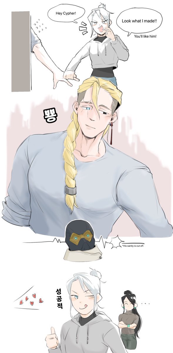 Jett gave him new ear rings. And new hair style is a bonus 🤣 #Cysova #Cyberowl #VALORANTfanart