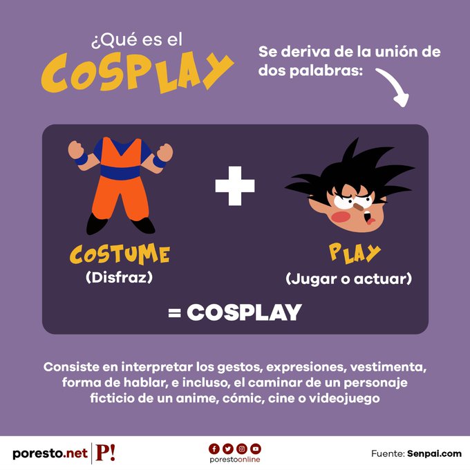 🥸 Una de las costumbres más conocidas por aquellos fans del anime es el #cosplay, ya que alrededor del mundo, podemos ver a varias personas haciendo uno de su personaje favorito 😅 Pero, ¿sabes qué significa esa palabra y en qué consiste? 👀 ¡Feliz #DíaDelOtaku! 🥳