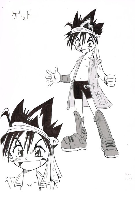 ゲット初期案とそのイメージイラストです。 最初は現在と少し髪型がちがいます。 もっと特徴が出るように激王伝ゲットだけの デザインを考えて今のゲットになっています。 #デュエル・マスターズ #D・M激王伝ゲット