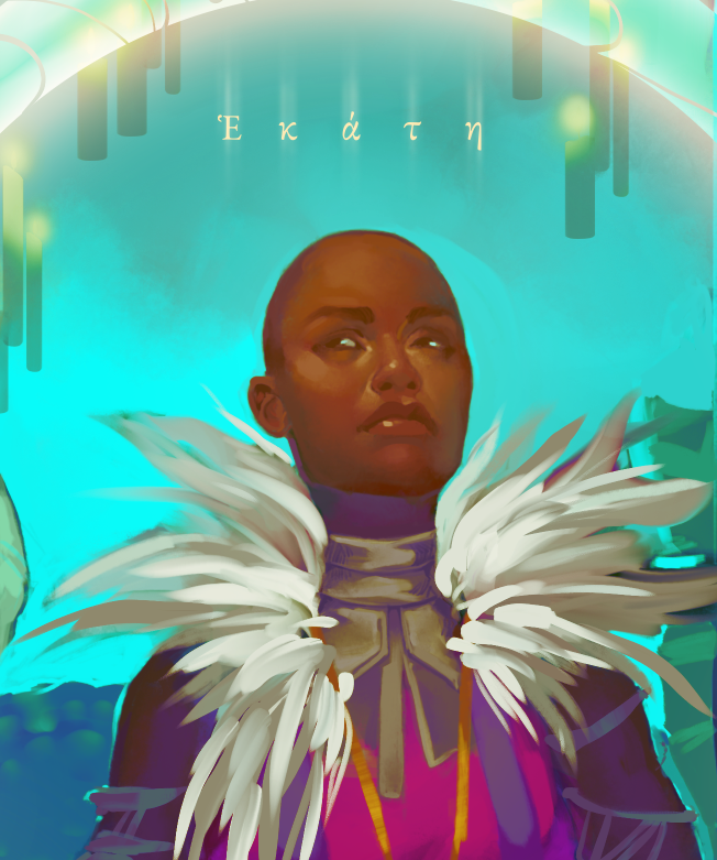 Hecate was goddess of witchcraft and appeared in triad, with horse, snake and dog. Ikora got very symbolic costume this particular Halloween with her pals, isn't she? #Destiny2 #Destiny2Art #FOTLArtShow2021 #destinythegame #D2ArtEventsFOTL