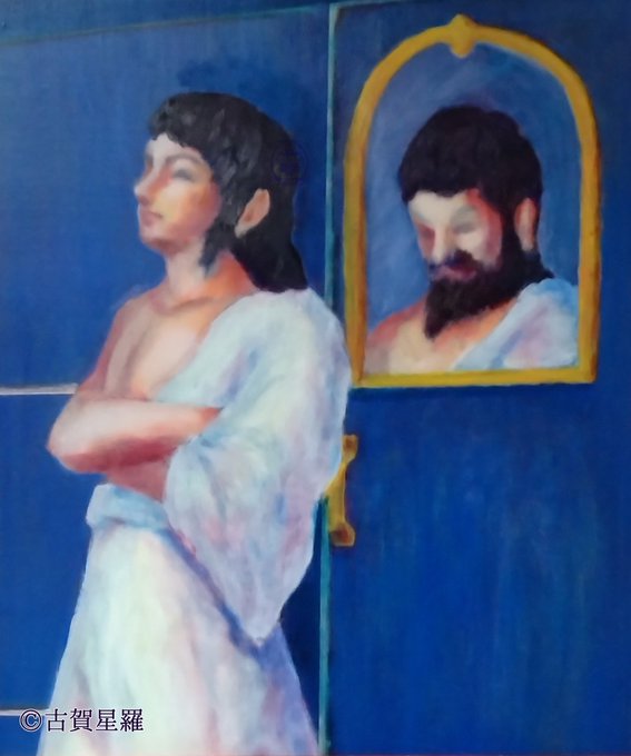 【videre】 『DREAMERS ART 〜扉〜』に展示した作品です。 ギリシャ神話に登場する扉の守護神と言われるヤヌスです。 #kagoshima_art #DA扉 #ギリシャ神話 #ヤヌス #oilpainting #油絵 #油彩画