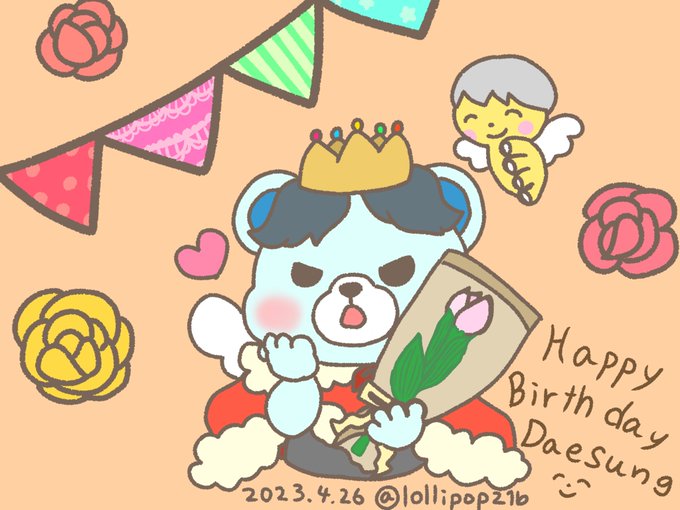 お誕生日おめでトございます✨🎉🥂🎂🥂🍾✨ 優しくてあたたかい、素敵な1年になりますように🌼 (持っているチューリップの意味はこのツイートの続きで書きます。) #HappyDaesungDae #Daesung #BIGBANGfanart