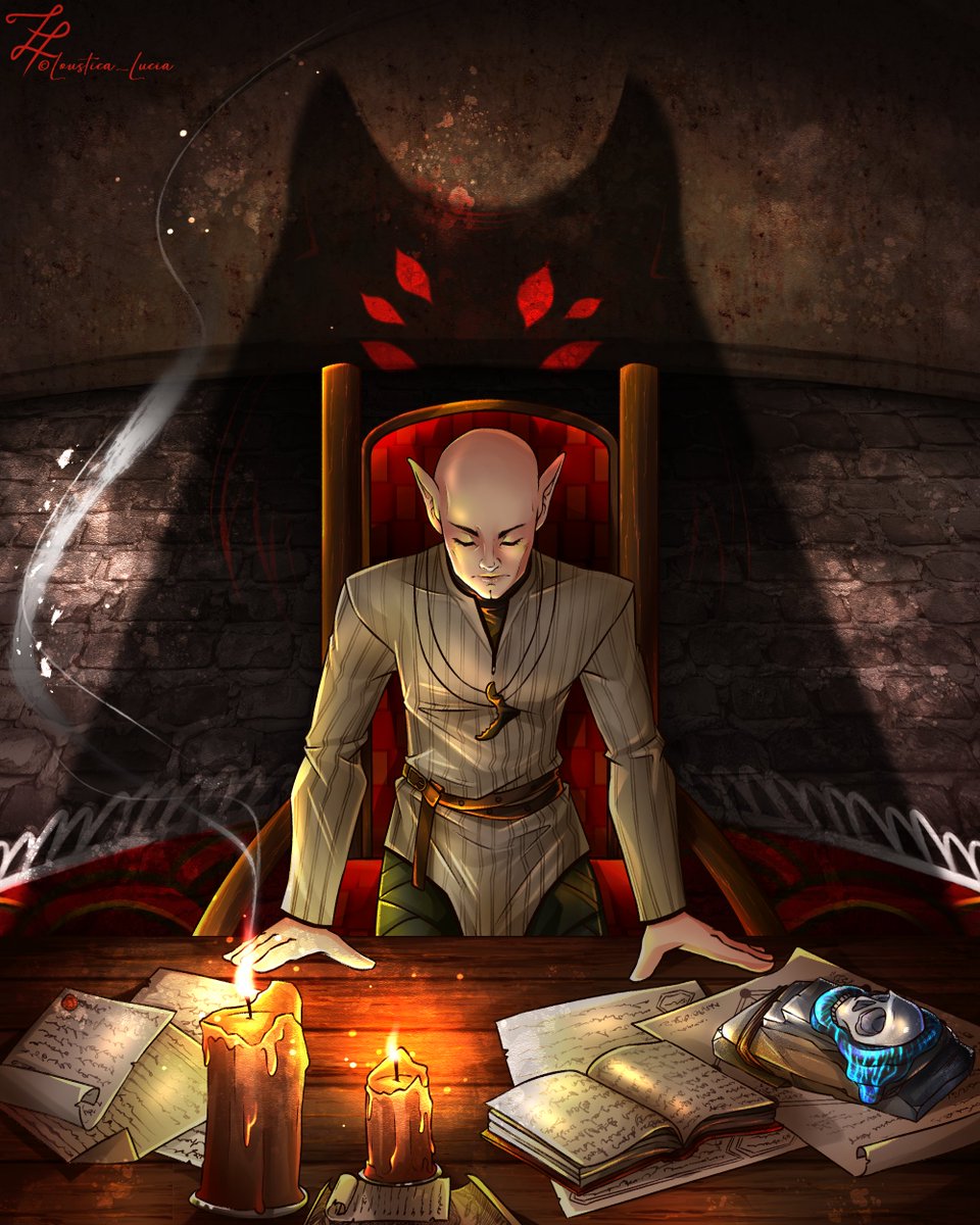 The Dread Wolf foreSHADOWing! ...👈OWO👈 Don't mind my 6am puns and embrace Solas scheming late at night at his Inquisitor's landing desk 👀 #DragonAge #DragonAgeInquisition #Bioware #DAI