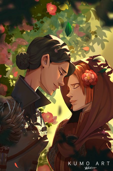 “The sunlight, the world, it all feels… gentler, when you’re near.” — (art trade with @tonigiacopelli 🌿) #DragonAge #DragonAgeInquisition #DAI #cullavellan #art #arttrade #drawing