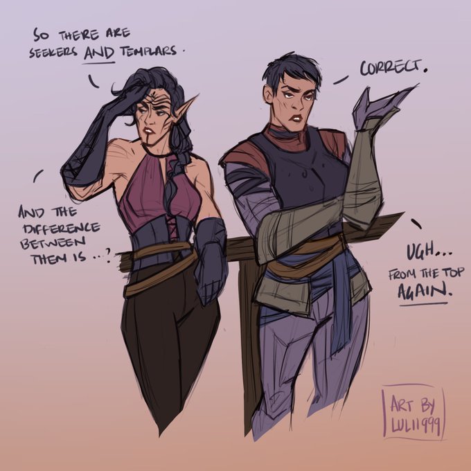 Becoming the Herald of Andraste really should come with a manual. (Luckily the advisors are all too happy to help Irith by giving a crash course on Thedas Basics) #dragonage #dragonageinquisition #dai #bioware #fanart